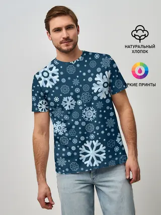 Мужская базовая футболка / Новогодние снежинки, новый год