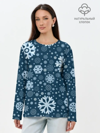 Лонгслив женский. Хлопок / Новогодние снежинки, новый год