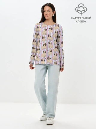 Лонгслив женский. Хлопок / Забавные Мопсы