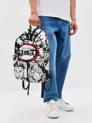 Рюкзак детский / Kimetsu no yaiba чернобелый коллаж