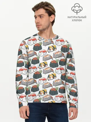 Мужской лонгслив базовый / Котики | Суши