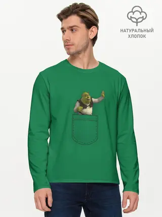 Мужской лонгслив базовый / Машущий из кармана Шрек