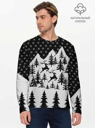 Мужской лонгслив базовый / Северные Олени в Горах