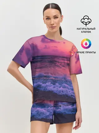 Женская пижама с шортами / Закат на берегу