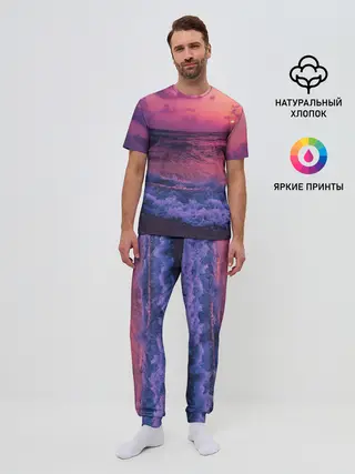 Мужская пижама с брюками / Закат на берегу