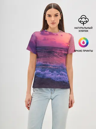Женская базовая футболка / Закат на берегу