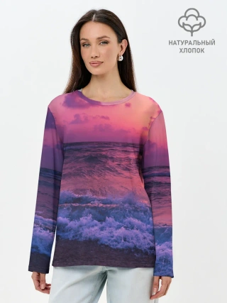 Лонгслив женский. Хлопок / Закат на берегу