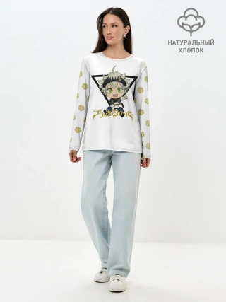 Лонгслив женский. Хлопок / Маленький Аста Черный Клевер