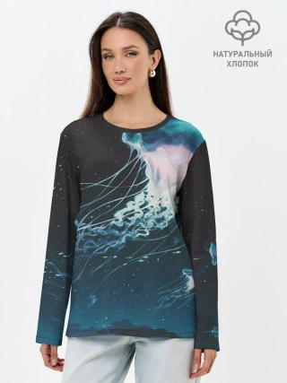 Лонгслив женский. Хлопок / Рисунок медуза