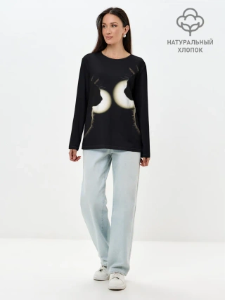 Лонгслив женский. Хлопок / Пара | Силуэты черных кошек
