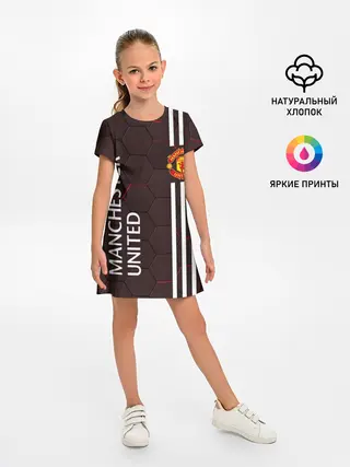 Детский лонгслив / Манчестер Юнайтед фон в клетку