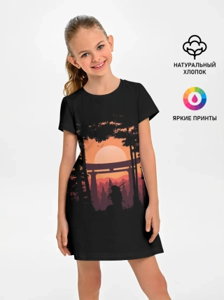 Детский лонгслив / Девушка-кошка-самурай