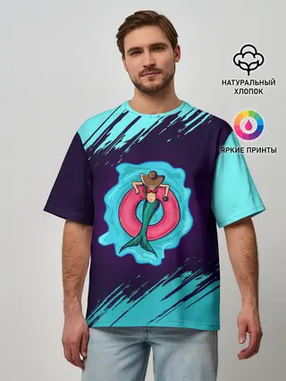Мужская футболка оверсайз / Русалка на отдыхе | Mermaid
