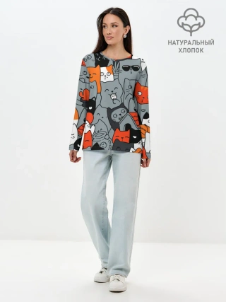 Лонгслив женский. Хлопок / Разноцветные коты