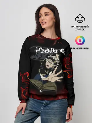 Лонгслив женский. Хлопок / Аста в огне Чёрный клевер