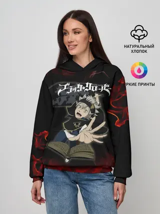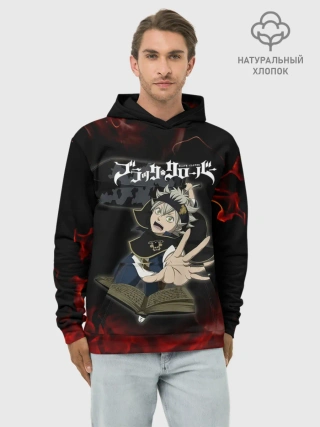 Худи мужской база хлопок / Аста в огне Чёрный клевер