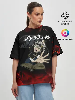 Женская футболка оверсайз / Аста в огне Чёрный клевер