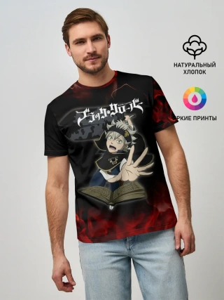 Мужская базовая футболка / Аста в огне Чёрный клевер