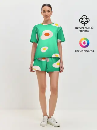 Женская пижама с шортами / Яйца на Зеленом Фоне