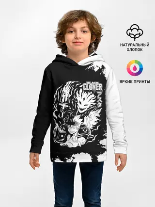 Детский лонгслив / Чёрный клевер черно-белый разрыв