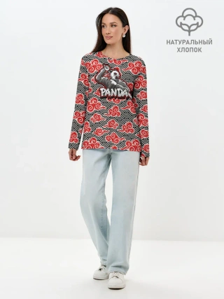 Лонгслив женский. Хлопок / Панда-ниндзя