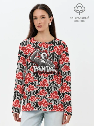 Лонгслив женский. Хлопок / Панда-ниндзя