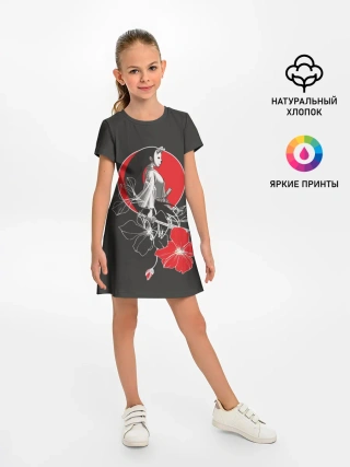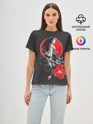 Женская футболка оверсайз / Девушка-кошка-самурай