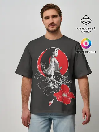 Мужская футболка оверсайз / Девушка-кошка-самурай