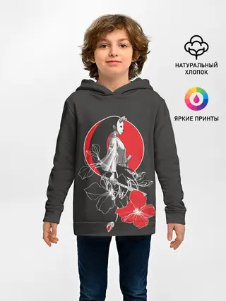 Худи мужской база хлопок / Девушка-кошка-самурай