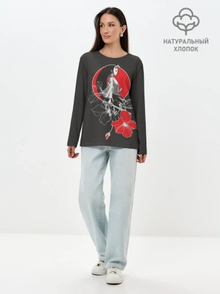 Лонгслив женский. Хлопок / Девушка-кошка-самурай