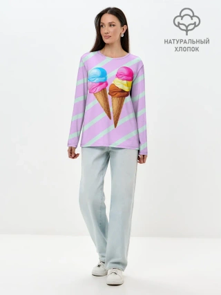 Лонгслив женский. Хлопок / Мороженое графический фон