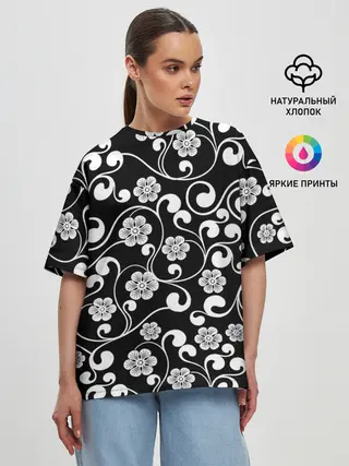 Женская футболка оверсайз / Векторные цветы