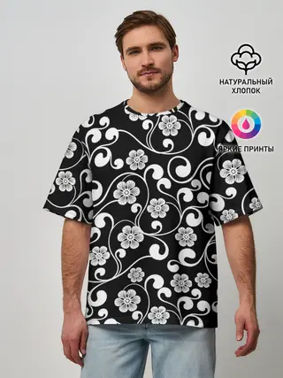 Мужская футболка оверсайз / Векторные цветы