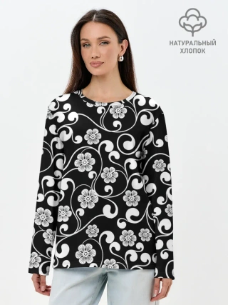 Лонгслив женский. Хлопок / Векторные цветы