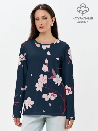 Лонгслив женский. Хлопок / Веточки сакуры