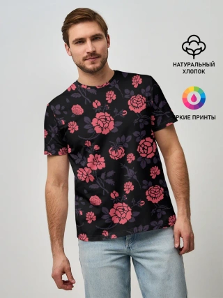Мужская базовая футболка / Ночные розы