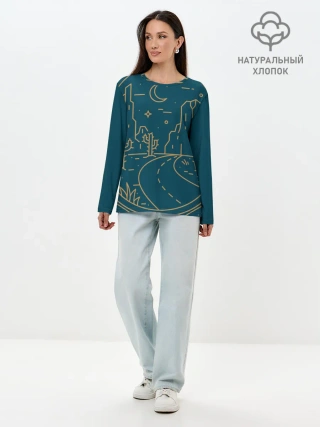 Лонгслив женский. Хлопок / КОСМИЧЕСКИЙ ПЕЙЗАЖ. ЗЕМЛЯ