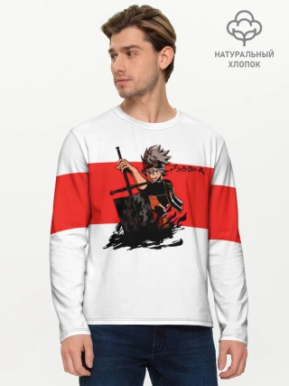 Мужской лонгслив базовый / Чёрный клевер Аста красная полоса