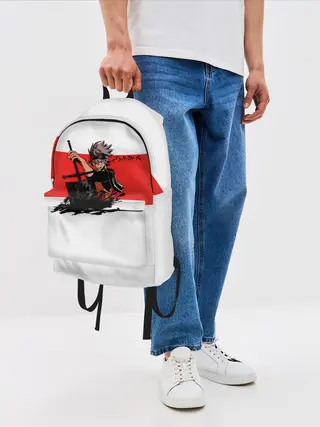 Рюкзак джинсовый / Чёрный клевер Аста красная полоса