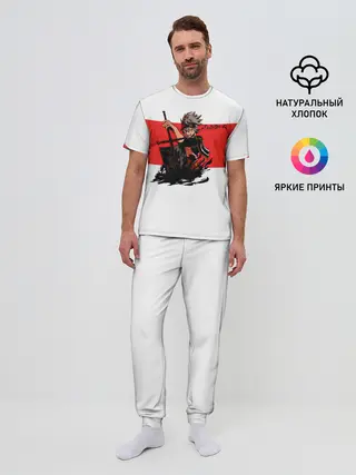 Мужская пижама с брюками / Чёрный клевер Аста красная полоса