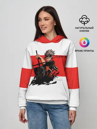 Женское худи / Чёрный клевер Аста красная полоса