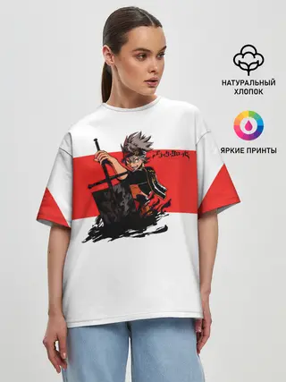 Женская футболка оверсайз / Чёрный клевер Аста красная полоса