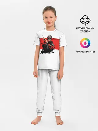 Детская пижама с брюками / Чёрный клевер Аста красная полоса