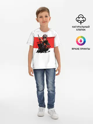 Детская базовая футболка / Чёрный клевер Аста красная полоса