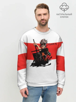 Мужской свитшот базовый / Чёрный клевер Аста красная полоса