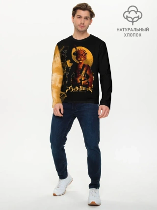 Мужской лонгслив базовый / Чёрный клевер Аста желтая луна