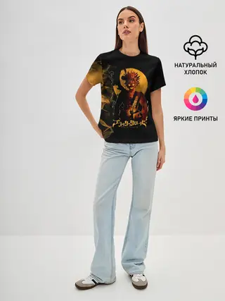 Женская базовая футболка / Чёрный клевер Аста желтая луна