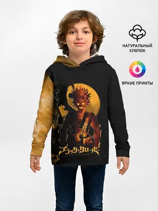 Детский лонгслив / Чёрный клевер Аста желтая луна