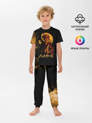 Детская пижама с брюками / Чёрный клевер Аста желтая луна