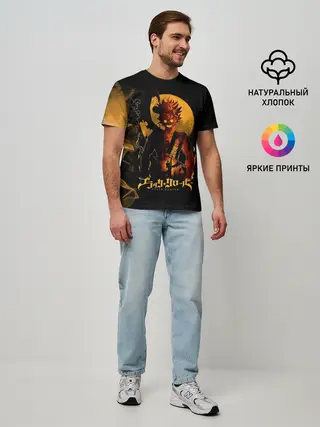 Мужская базовая футболка / Чёрный клевер Аста желтая луна